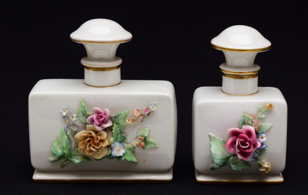 • 02 Peças decorativas para banheiro em porcelana portuguesa AVEIRO PORTUGAL. Med: Maior 14cm / Menor 13cm ( 01 tampa no estado)