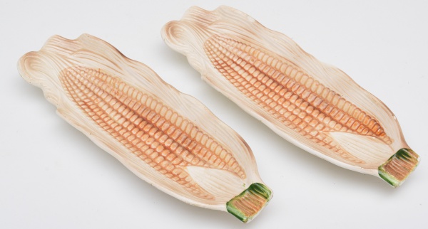 • Par de porta milhos em cerâmica esmaltada e vitrificada. Apresentam bicados nas bordas. Medidas: 24 x 8cm.
