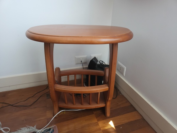 • Mesinha para telefone com revisteiro, em madeira nobre. Medidas: 60 x 60 x 38cm. RETIRADA NA TIJUCA PELO ARREMATANTE, APÓS AGENDAMENTO PRÉVIO.